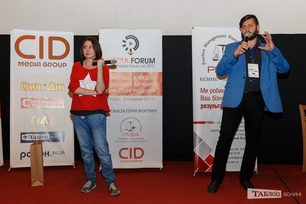 На форумі також виступили спікери з Луцька. Зокрема, керівник мережі гіперлокальних видань Район.in.ua Наталія Пахайчук поділилася досвідом соціальної відповідальності медіа: розповідала як, чому і для кого газета «Сім’я і дім» вирішило друкувати пресу шрифтом Брайля.